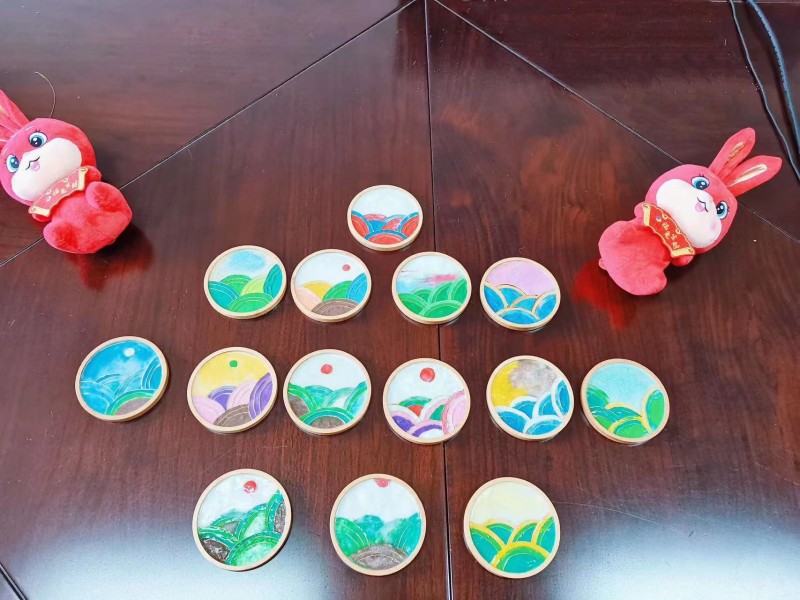 課上,單文靜詳細介紹了掐絲琺瑯彩畫(huà)的歷史淵源、發(fā)展歷程和工藝流程,并現場(chǎng)教授創(chuàng )作技巧和色彩搭配,培養大家對琺瑯彩畫(huà)藝術(shù)的審美情趣。在場(chǎng)人員聚精會(huì )神地傾聽(tīng)、觀(guān)看,相互討論交流。隨后,在老師的指導下,大家用自己的巧手和智慧,按照“掐絲-洗沙-點(diǎn)彩”的步驟,制作出了一個(gè)個(gè)極具個(gè)性、各具韻味的掐絲琺瑯畫(huà)杯墊。