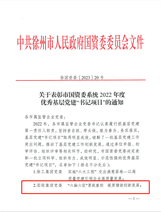 近日,市國資委發(fā)布《關(guān)于表彰市國資系統2022年度優(yōu)秀基層黨建“書(shū)記項目”的通知》,集團公司黨委書(shū)記項目《“六融六促”勇挑重擔  提質(zhì)增效創(chuàng )新發(fā)展》獲評市國資系統2022年度優(yōu)秀基層黨建“書(shū)記項目”,這也是集團公司連續兩年獲得此項榮譽(yù)。