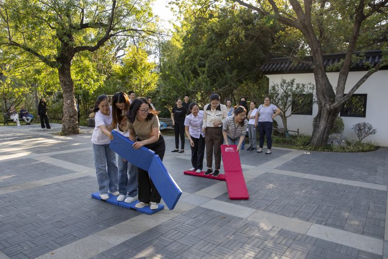 9月21日下午,集團公司工會(huì )在快哉亭公園開(kāi)展雙節同慶趣味活動(dòng)?;顒?dòng)設有“蔬菜連連看看”“沙包投擲盤(pán)”“同舟共濟”3個(gè)項目,各隊隊員協(xié)同共進(jìn)、你追我趕,比賽在激烈而又愉快的氣氛中圓滿(mǎn)結束。
