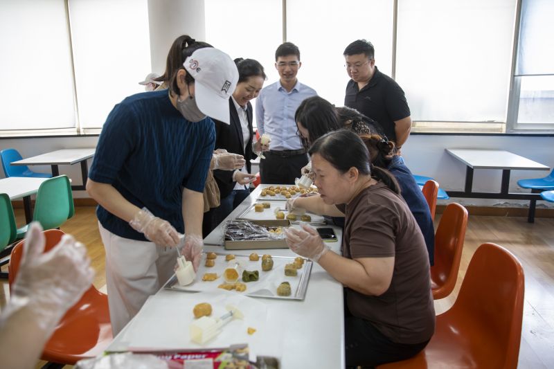 9月28日上午,集團公司工會(huì )組織中秋月餅DIY活動(dòng)。工作人員將月餅材料分發(fā)到大家手中,烘焙老師耐心為大家演示,大家一同合作,從配料的挑選—揉皮—裹餡—入?!尚?,一個(gè)個(gè)形狀精美、象征團圓的月餅呈現在大家眼前。