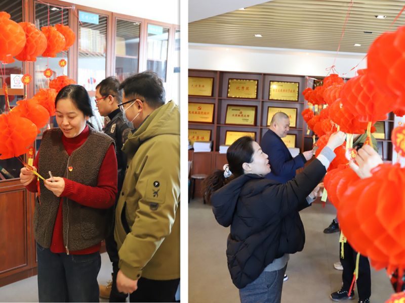 活動(dòng)現場(chǎng),一個(gè)個(gè)燈籠交錯點(diǎn)綴,烘托出歡樂(lè )祥和的節日氣氛?;顒?dòng)中共設置燈謎40余條,內容涵蓋傳統文化知識、黨史以及二十大精神等,既兼具娛樂(lè )性和知識性,也激發(fā)了黨員干部職工對黨史及二十大精神了解的興趣。黨員們積極參與活動(dòng),認真挑選燈謎,相互討論謎底答案,場(chǎng)面十分熱鬧。