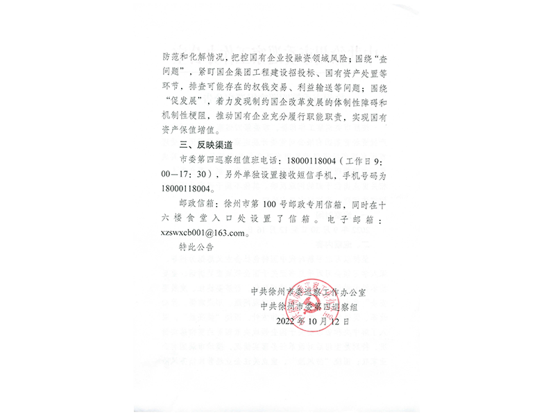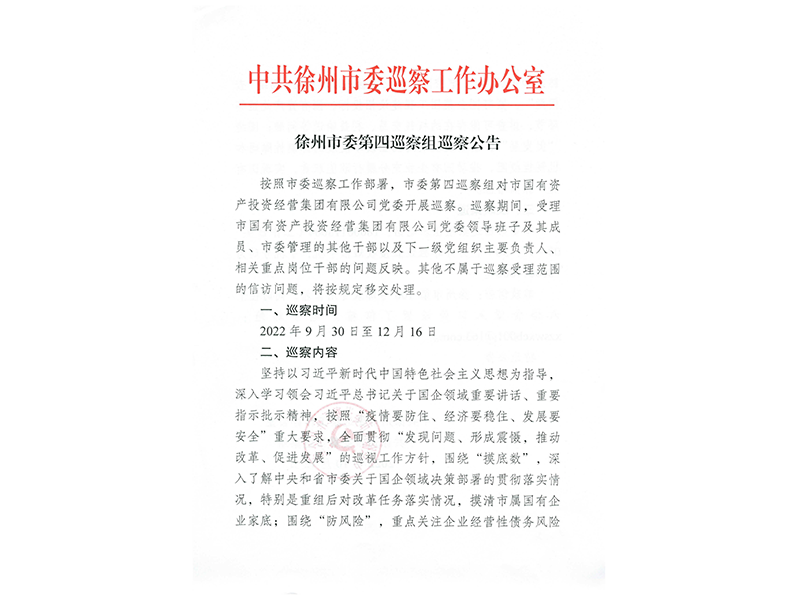 徐州市委第四巡察組巡察公告