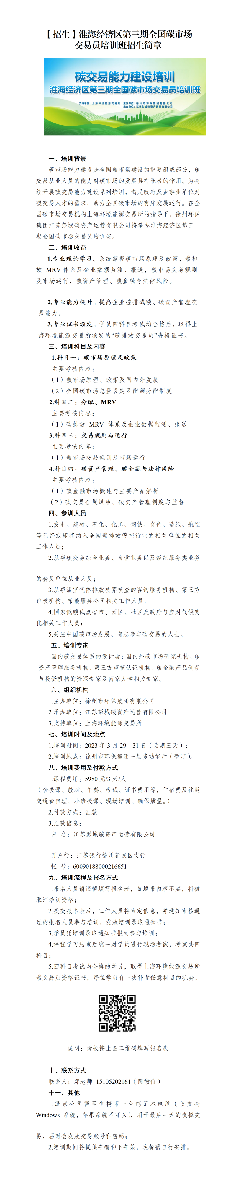 【招生】淮海經(jīng)濟區第三期全國碳市場(chǎng)交易員培訓班招生簡(jiǎn)章