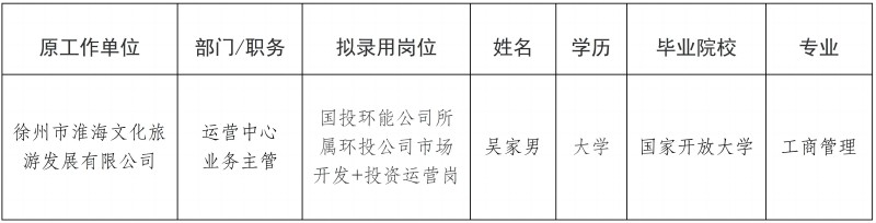 徐州國投環(huán)能公司所屬環(huán)投能源科技公司公開(kāi)招聘擬錄用人員名單公示