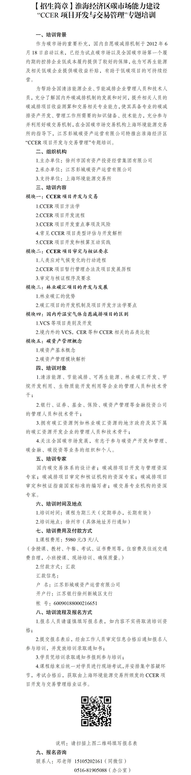 【招生簡(jiǎn)章】淮海經(jīng)濟區碳市場(chǎng)能力建設“CCER項目開(kāi)發(fā)與交易管理”專(zhuān)題培訓