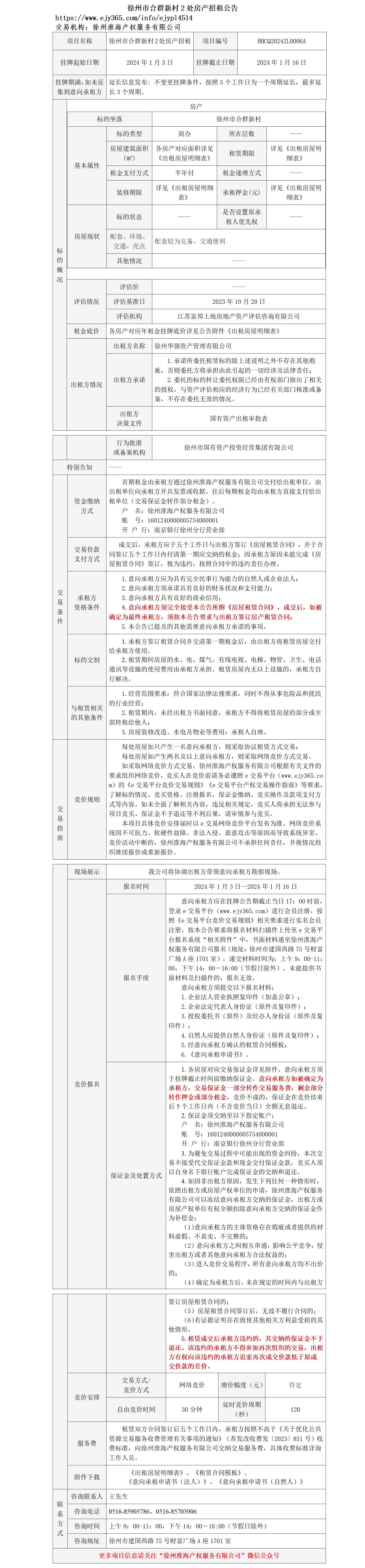 徐州市合群新村2處房產(chǎn)招租公告