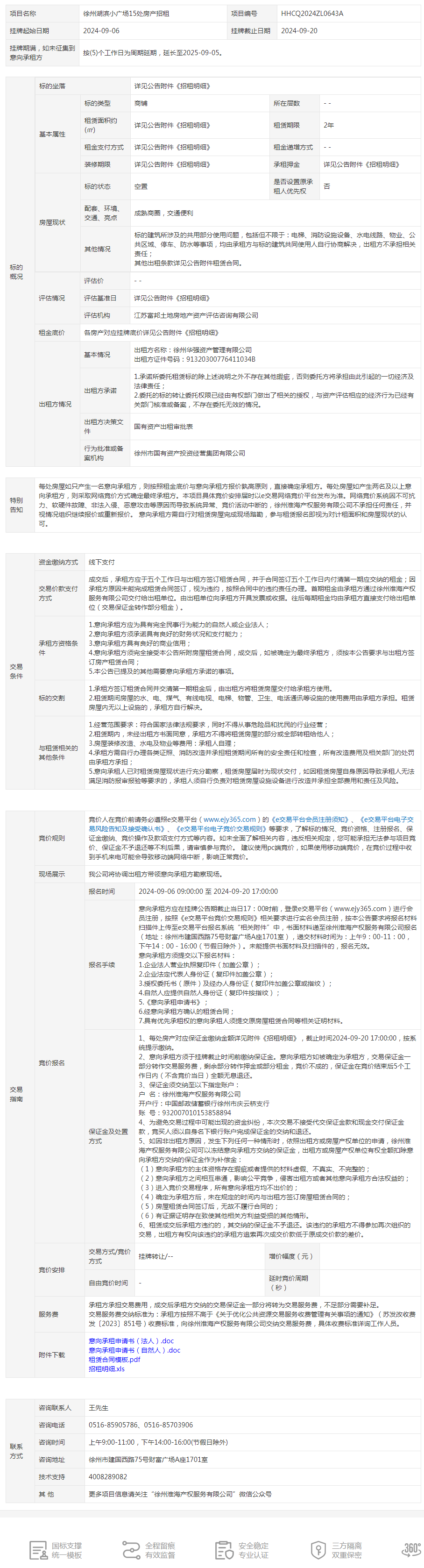 徐州湖濱小廣場(chǎng)15處房產(chǎn)招租公告