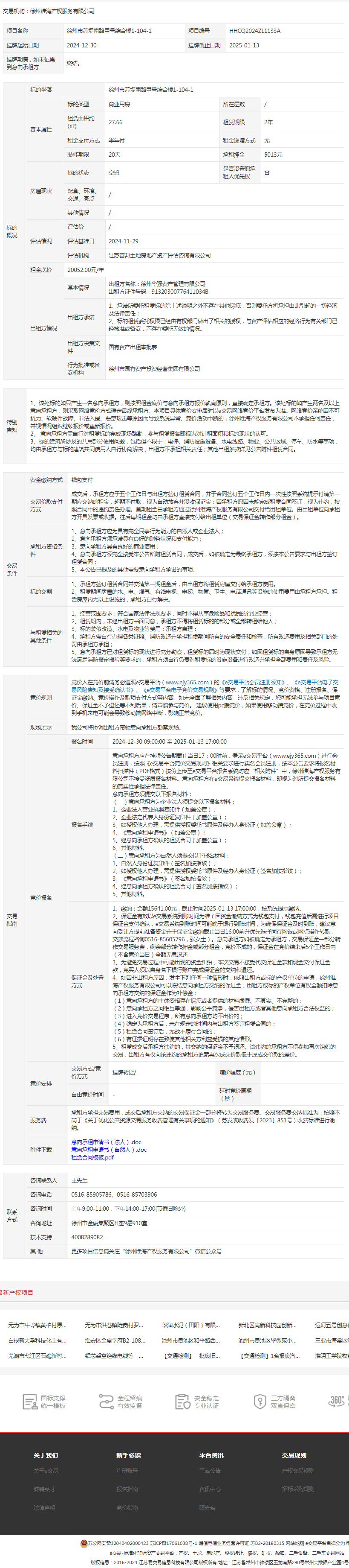 徐州市沙后巷住宅小區1-1層103(2)招租公告