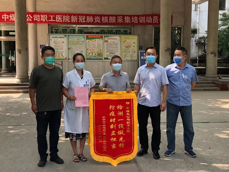 泉山區火花辦事處向中煤五公司職工醫院致感謝信和錦旗