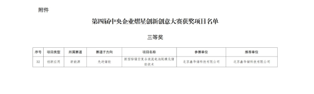 1月3日,國務(wù)院國資委發(fā)布《關(guān)于第四屆中央企業(yè)熠星創(chuàng )新創(chuàng )意大賽獲獎名單的通報》,徐州國投集團基金投資先進(jìn)儲能賽道項目北京鑫華儲科技有限公司獲得三等獎。本屆熠星大賽由國務(wù)院國資委聯(lián)合國家發(fā)展改革委、科學(xué)技術(shù)部、中國科學(xué)技術(shù)協(xié)會(huì )等多家單位共同舉辦,共有5067個(gè)項目…