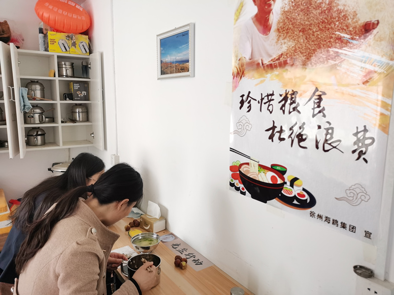 除了加大宣傳外,海鷗集團自創(chuàng )了一套“暗藏玄機”的“鷗”范用餐,精細化引導節約。一是限量分份。取餐限制數量,如每人一塊紅燒肉、五只蝦、一個(gè)蘋(píng)果等,能限量的盡可限量;提供小份量,一個(gè)紅薯切成幾塊,煎餅烙饃一切為二,方便取食入口、又避免量大浪費、更豐富飲食、有益健康,一舉多得。二是一人一盒。海鷗食堂為每名職工提供一個(gè)固定的不銹鋼飯盒,首先省去一次性筷子、餐具等資源,其次自己使用、自己刷洗等用餐流程,讓大家按需取餐,不易浪費,再者,要排隊刷洗餐具,自然加快速度,從而節約用水。三是食堂廚師用小鍋分次炒菜,根據當天用餐情況,一小鍋一小鍋出,小鍋菜既保證味道可口,又避免大量剩菜。