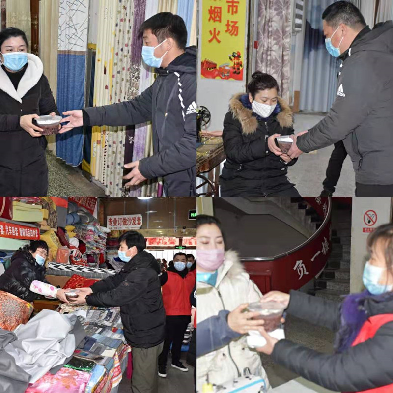 “過(guò)了臘八就是年”。今年臘八節恰逢大寒節氣,早上6點(diǎn),工作人員便早早來(lái)到市場(chǎng),將提前準備好的優(yōu)質(zhì)糯米、黑米、花生米、蕓豆、紅豆、葡萄干、紅棗等食材清洗干凈,經(jīng)過(guò)近5個(gè)小時(shí)的熬制,一碗碗熱氣騰騰、濃郁糯香的臘八粥終于完成。因疫情原因,今年取粥的形式從以往排隊領(lǐng)取轉變?yōu)橛晒ぷ魅藛T逐層逐戶(hù)送到商戶(hù)手中,送的是粥暖的是心,商戶(hù)們喝著(zhù)甜蜜的臘八粥,臉上洋溢著(zhù)開(kāi)心的笑容。