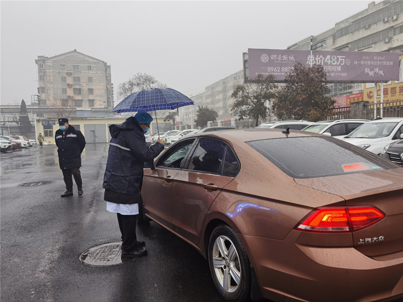 幾位臨床科主任率先垂范,積極參加到預檢分診工作中。內二科朱增武主任,干部?jì)瓤仆豕庥?、范德龍主任,中醫科張守春主任......他們雖然年紀不輕,平時(shí)科室管理、業(yè)務(wù)十分繁忙,但為支持疫情防控工作,率先站到了防控一線(xiàn)的崗位上,并用一貫認真的工作態(tài)度,仔細為每一個(gè)進(jìn)入醫院的患者做好預檢分診。雨中,朱增武主任一手擎著(zhù)傘,一手拿著(zhù)測溫儀,在車(chē)輛入口為司機進(jìn)行測溫,只見(jiàn)他身體前傾,把傘靠向開(kāi)窗接受測溫的司機,寧可自己淋在雨中。58歲的王光宇主任,患有冠心病、高血壓、腰椎鍵盤(pán)突出等疾病,但他毫不猶豫地站到了抗疫一線(xiàn),每天一站就是幾個(gè)小時(shí)。