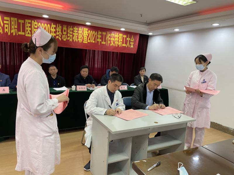 院長(cháng)陶洪臣對2020年醫院工作進(jìn)行了全面、客觀(guān)的總結,指出了不足,并對2021年工作提出了具體要求。醫院相關(guān)負責人宣讀了2020年度先進(jìn)集體、先進(jìn)工作者和優(yōu)秀共產(chǎn)黨員的表彰決定,為獲獎人員頒發(fā)了獎牌證書(shū)。陶洪臣與各主要臨床醫技科室簽訂了《2021年綜合目標責任書(shū)》。