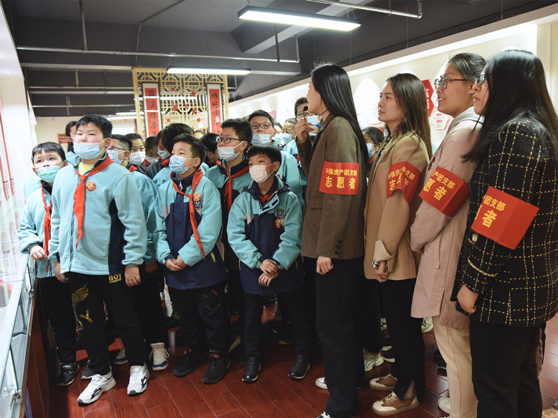4月19日,解放路小學(xué)百名學(xué)生來(lái)到蘇悅黨支部紅色藏品微展館參觀(guān)學(xué)習,華強團支部組織團員青年作為志愿者維護現場(chǎng)秩序,全程守護學(xué)生們的安全,在接受黨史學(xué)習教育的同時(shí),確保此次活動(dòng)順利開(kāi)展。