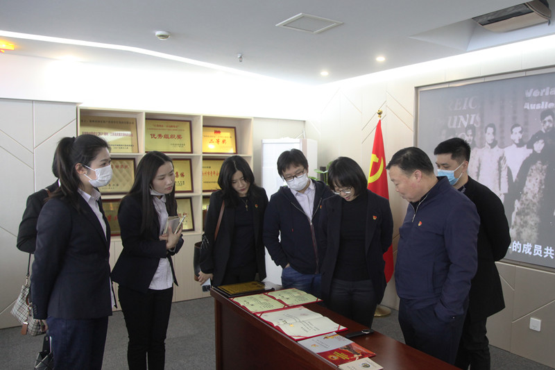 孫雪影一行參觀(guān)了集團公司多媒體黨建活動(dòng)室。座談會(huì )上,雙方圍繞高質(zhì)量黨建引領(lǐng)高質(zhì)量發(fā)展進(jìn)行了友好交流,對黨建更好融入生產(chǎn)經(jīng)營(yíng)相關(guān)問(wèn)題進(jìn)行了探討,達成合作共識。