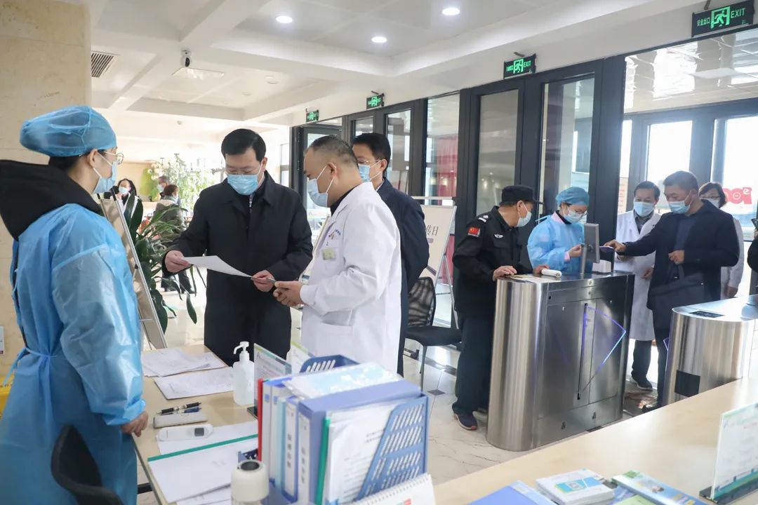 丁廣州一行深入醫院門(mén)診部、康復治療部、黨建活動(dòng)室等區域,實(shí)地察看了疫情防控工作的落實(shí)情況,詳細詢(xún)問(wèn)了門(mén)診預檢分診、患者及陪護管理、應檢盡檢、消毒消殺、防護用品等各方面的具體保障措施。聽(tīng)取了醫院負責人關(guān)于預檢分診人員出入管理、病區患者陪護信息登記管理、應檢盡檢措施落實(shí)、醫院環(huán)境及設備的消毒殺菌、防疫物資配備、應急預案等方面落實(shí)情況的匯報。