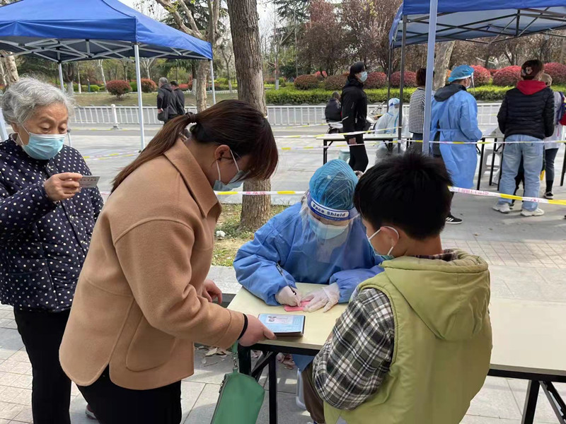 青春是多彩的,他們也是多樣的。有時(shí),他們一襲藍衣,挨家挨戶(hù)敲門(mén)走訪(fǎng);有時(shí),他們變身可愛(ài)的“大白”,主動(dòng)加入“黃碼”檢測點(diǎn)協(xié)助干好采樣工作;還有時(shí),他們戴著(zhù)紅袖章,拿著(zhù)大喇叭,變成小區的“廣播員”,呼叫居民盡快進(jìn)行核酸檢測。
