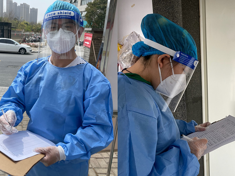 4月7日,是夫妻倆連續做社區抗疫志愿者的第7天,他們接到機場(chǎng)社區布置的最新任務(wù),下午2:00開(kāi)始在九里峰景小區內開(kāi)展“掃樓”行動(dòng)?!?個(gè)單元,98層,196戶(hù),晚上6:00前必須完成任務(wù)!”思維敏捷的馮子晏迅速估算了時(shí)間,按照每戶(hù)1分鐘,只要三個(gè)多小時(shí),完成任務(wù)不在話(huà)下。然而,在實(shí)際操作過(guò)程中,他才發(fā)現自己想簡(jiǎn)單了。很多居民警惕性高,要盤(pán)問(wèn)好久才開(kāi)門(mén);有些居民記不清核酸檢測次數,需要打開(kāi)手機小程序查看;還有的人家人口總數多,逐一問(wèn)完記完要過(guò)很久;而且電梯等起來(lái)也太耗時(shí)。怎么辦?夫妻二人改變策略,首先乘坐電梯來(lái)到最高層,自上而下逐層步行走訪(fǎng),然后由妻子小夏敲門(mén)詢(xún)問(wèn),增強親和力,丈夫小馮做好信息記錄。即使這樣,也不敢有絲毫耽擱,更別提再浪費時(shí)間跑到遠處找廁所。小夏雖然心疼,也只能安慰小馮“再忍忍”。一個(gè)下午的“馬不停蹄”,記完最后一個(gè)字,小馮立刻將登記表塞給小夏,飛快地向廁所跑去。而小夏彎了彎膝蓋,緩解下疲勞,隨手脫下手套,這才發(fā)現敲門(mén)的兩個(gè)手指關(guān)節已微微有些紅腫,按了按,疼地不自覺(jué)輕聲“啊”了一聲。
