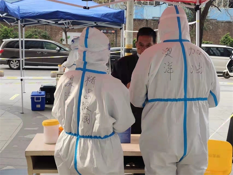 “叮叮?!痹缟?點(diǎn)鐘,鬧鈴急促地響起,國泰投資95后青年團員戚圓圓看了一眼手機,便快速起床,按照前一天志愿服務(wù)群里的安排急匆匆走向核酸檢測點(diǎn),開(kāi)始了新一天的志愿服務(wù)。雖然是公司年齡最小的志愿者,但她從5號開(kāi)始已連續4天,穿著(zhù)防護服進(jìn)行核酸采樣信息錄入、試管樣本遞送、維持隊列秩序、上門(mén)采集黃碼信息。每天從6點(diǎn)到下午3點(diǎn),持續高強度工作9個(gè)小時(shí),即便如此,她依然是干勁十足。她說(shuō)“社區還有70多歲的爺爺奶奶加入了志愿者隊伍,我這么年輕,出點(diǎn)汗、出點(diǎn)力沒(méi)事兒,能夠與白衣天使們并肩作戰,用自己的青春守護著(zhù)家園,我感到非常自豪?!?