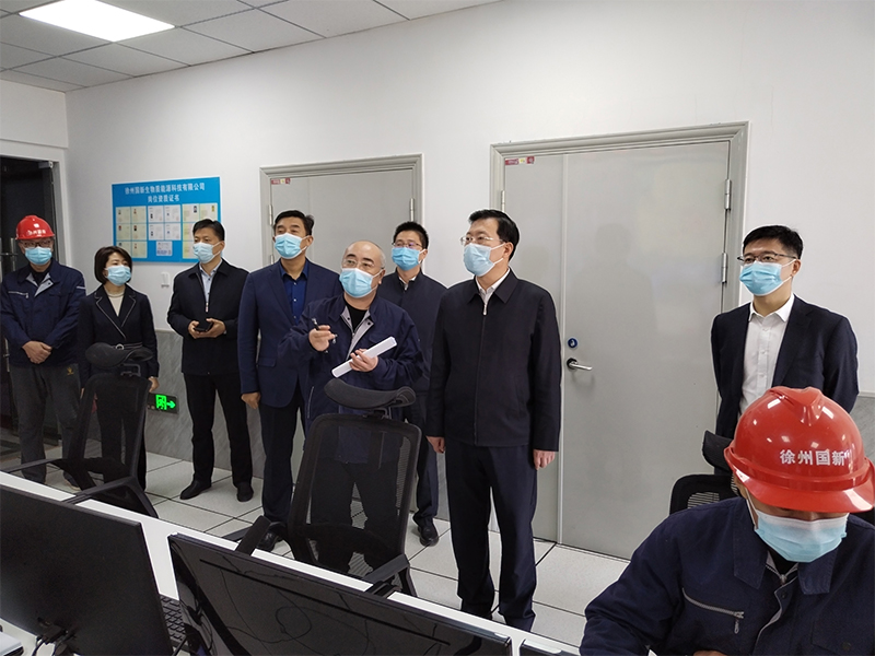 10月10日上午,市國資委黨委書(shū)記、主任、沛縣縣委書(shū)記丁廣州,沛縣副縣長(cháng)、安國鎮黨委書(shū)記朱成一行到徐州國新生物質(zhì)能源科技有限公司(以下簡(jiǎn)稱(chēng)“國新公司”)投資建設的沛縣有機廢棄物處理中心調研。集團公司黨委書(shū)記、董事長(cháng)王鵬,黨委委員、副總經(jīng)理王濤一同參加調研。