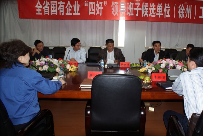 2011年9月21日上午,以省蘇豪集團黨委副書(shū)記、紀委書(shū)記劉顯豪為組長(cháng)的省“四好”領(lǐng)導班子考核小組第四組一行4人來(lái)到徐州,對徐工集團、國投集團等全省國有企業(yè) “四好”領(lǐng)導班子候選單位進(jìn)行檢查考評。市委組織部副部長(cháng)杜慶琦、干部四處處長(cháng)張小件,市國資委副書(shū)記、副主任孫惠風(fēng)參加會(huì )議并聽(tīng)取匯報。