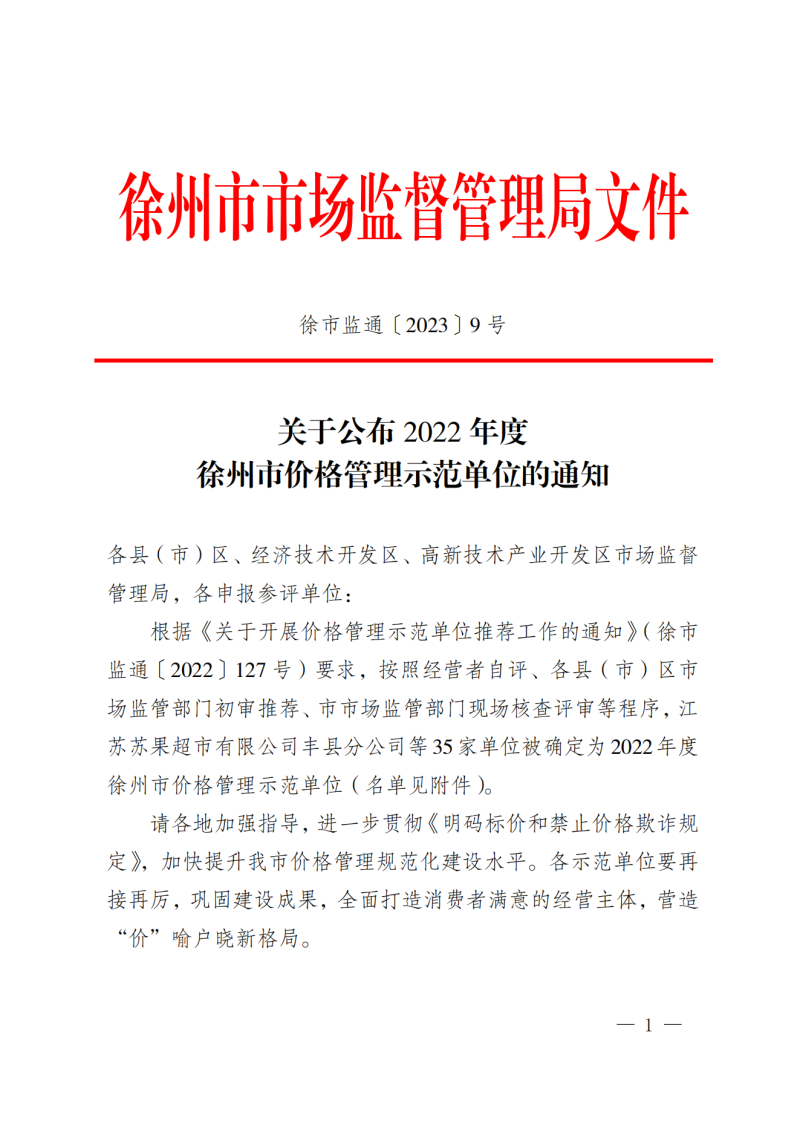為深入推進(jìn)價(jià)格誠信建設,不斷規范和引導市場(chǎng)價(jià)格行為,培育誠實(shí)守信的市場(chǎng)主體。近日,經(jīng)過(guò)經(jīng)營(yíng)者自評、各縣(市)區市場(chǎng)監管部門(mén)初審推薦、徐州市市場(chǎng)監管部門(mén)現場(chǎng)核查評審等一系列程序,國泰太平洋酒店榮獲徐州市市場(chǎng)監督管理局“2022年度徐州市價(jià)格管理示范單位”榮譽(yù)稱(chēng)號。