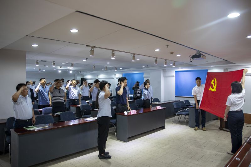 全體年輕干部肅立,舉起右手,面向黨旗莊嚴宣誓?!拔抑驹讣尤胫袊伯a(chǎn)黨,擁護黨的綱領(lǐng),遵守黨的章程……隨時(shí)準備為黨和人民犧牲一切,永不叛黨?!卞P錚誓言擲地有聲,鏗鏘字句響徹會(huì )場(chǎng)。喚醒了年輕干部入黨時(shí)的初心,激發(fā)了年輕干部進(jìn)一步堅定理想信念、立足崗位建功的壯志豪情。