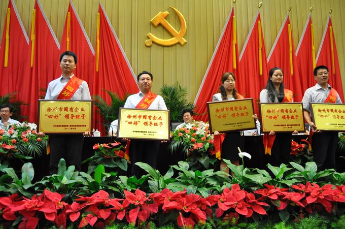 6月29日上午,市委組織部、市國資委黨委召開(kāi)市屬企業(yè)紀念建黨91周年暨“四好”領(lǐng)導班子、“基層組織建設年”工作推進(jìn)會(huì ),集團公司黨委書(shū)記、董事長(cháng)李修明,黨委副書(shū)記、總經(jīng)理李曉東,受表彰的基層支部負責同志以及黨員代表參加了會(huì )議。會(huì )上集團公司被授予徐州市國有企業(yè)“四好”領(lǐng)導班子榮譽(yù)稱(chēng)號,機關(guān)第三黨支部被授予“先進(jìn)基層黨組織”稱(chēng)號,集團公司規劃發(fā)展部部長(cháng)霍凱、成功物業(yè)公司總經(jīng)理楊洪偉被授予“優(yōu)秀共產(chǎn)黨員”稱(chēng)號。