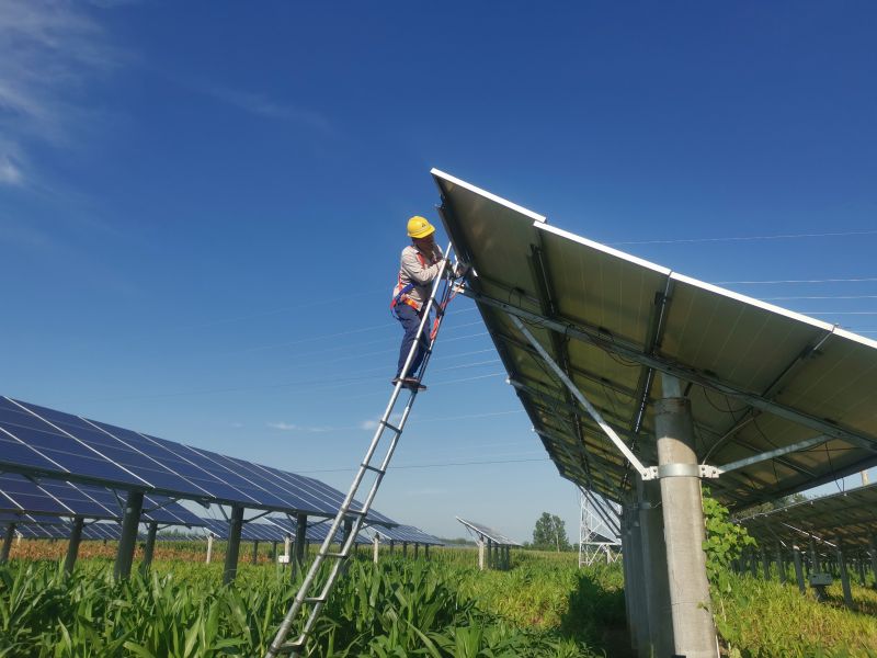 安徽區域的地面光伏場(chǎng)站較為分散,光伏區遍布茂密的農作物或雜草,完成一次巡視需要大量的人力與時(shí)間。光伏板經(jīng)過(guò)烈日曬烤,散發(fā)陣陣熱浪,宿州協(xié)鑫、碭山協(xié)鑫、碭山鑫能電站的運維人員剛剛開(kāi)展一次登高作業(yè),在地面小伙伴的配合下,完成了對故障光伏組串的維修。熾熱的火傘高張在空中,高處的風(fēng)并沒(méi)有送來(lái)涼爽的感覺(jué),被暴曬過(guò)的支架盡管隔著(zhù)工作服,仍能感受到它的炙熱。