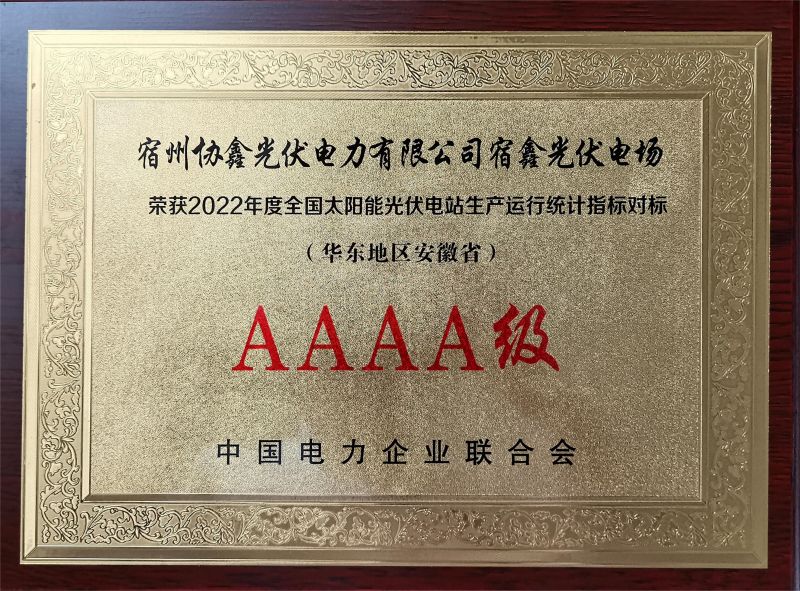 能源集團所屬宿州電站榮獲“2022年度全國太陽(yáng)能光伏電站生產(chǎn)運行統計指標對標(華東地區安徽?。?A級電站”稱(chēng)號