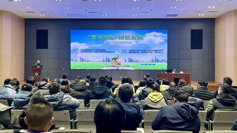 12月14日,“國投碳索·綠色發(fā)展”系列專(zhuān)題培訓在金龍湖書(shū)院順利舉辦。本次活動(dòng)由徐州經(jīng)開(kāi)區、徐州國投集團共同主辦,經(jīng)開(kāi)區金融局、碳管理體系(淮海經(jīng)濟區)服務(wù)中心承辦。徐州經(jīng)開(kāi)區管委會(huì )副主任季洪志及相關(guān)領(lǐng)導出席本次活動(dòng),轄區高排放、可再生能源企業(yè)、重點(diǎn)產(chǎn)業(yè)園區及出口企業(yè)主要負責人參加活動(dòng)。