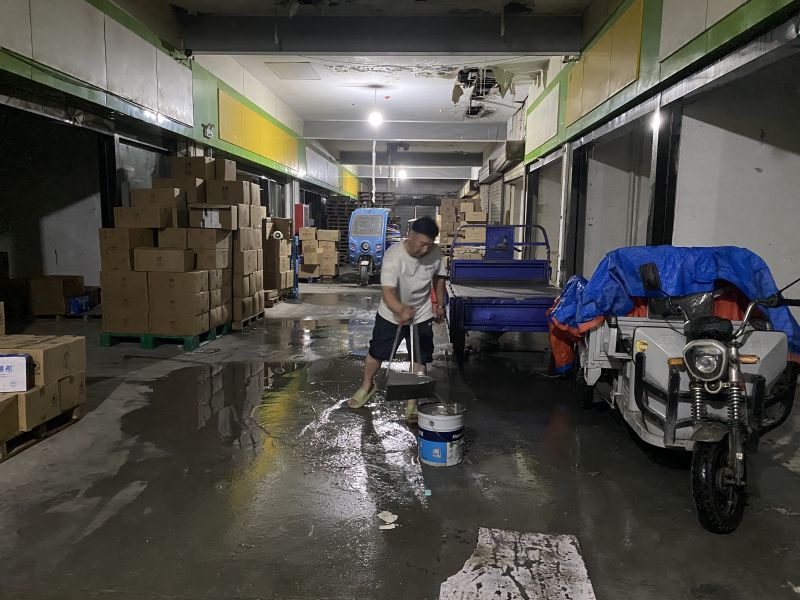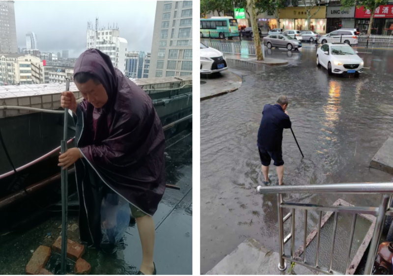 大雨導致旭鵬公司、國聯(lián)科公司、中山路50號及戲馬臺商廈等房產(chǎn)屋面和庫房積水嚴重,屋面水位急速上升,帶來(lái)嚴重安全隱患。輕資產(chǎn)人員立即啟動(dòng)防汛應急預案,在風(fēng)雨中緊急增加水泵排水、疏通下水道、清理各處積水,全力保障了公司設施設備安全,避免業(yè)主財物受損。