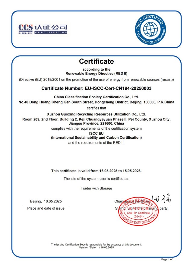 首戰告捷,開(kāi)辟生物質(zhì)能源貿易新賽道。作為集團公司能源板塊的第三戰略賽道——生物質(zhì)能源,國興公司積極響應國家“雙碳”戰略,全力布局生物質(zhì)能源開(kāi)發(fā)與應用。今年5月,公司成功通過(guò)歐盟ISCC工業(yè)級混合油(UCO)認證,成為符合國際可持續生物能源原料標準的核心供應商。此次千噸級訂單的落地,不僅驗證了公司在原料品質(zhì)、供應鏈管理及市場(chǎng)響應能力上的優(yōu)勢,更彰顯了其在生物質(zhì)能源貿易領(lǐng)域的核心競爭力。