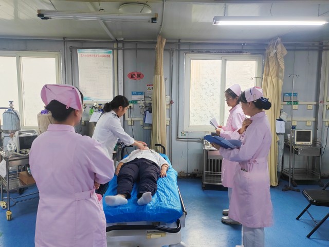 不同于單項技能比武,本次OSCE考核最大的特點(diǎn)是高度模擬臨床真實(shí)情境,強調工作的連貫性和應急判斷能力??己朔譃槿?,環(huán)環(huán)相扣。第一站,護士化身為洞察入微的“偵察兵”,在有限時(shí)間內,面對由專(zhuān)業(yè)人員扮演的“標準化病人”,進(jìn)行詳細的病史采集和精準的身體評估,此站考驗了護士的溝通技巧和觀(guān)察能力;第二站,護士化身為精準高效的“戰術(shù)家”,基于第一站的評估結果迅速提出核心護理問(wèn)題,并立即采取相應的護理措施;第三站,護士化身為沉著(zhù)果敢的“突擊隊”,面對患者病情驟然惡化,第一時(shí)間識別危急值,果斷采取心肺復蘇、急救用藥等緊急救治措施。這一站是考核的重中之重,直接檢驗護士在壓力下的心理素質(zhì)、快速反應能力和搶救技能。