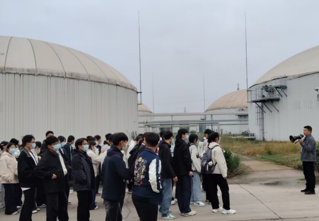 在國新公司相關(guān)負責人陪同下,師生們系統參觀(guān)了中控室、沼氣脫硫系統、厭氧發(fā)酵裝置、預處理車(chē)間、餐廚處理車(chē)間及沼液膜濃縮車(chē)間等關(guān)鍵工藝環(huán)節。針對學(xué)生的學(xué)科背景,講解人員聚焦智能化管控系統、環(huán)保處理工藝及機電設備的運行原理等內容進(jìn)行了深入講解,使同學(xué)們在真實(shí)的產(chǎn)業(yè)場(chǎng)景中,直觀(guān)感受到理論知識與工程實(shí)踐的深度融合,進(jìn)一步激發(fā)了專(zhuān)業(yè)研習熱情與職業(yè)方向認同。