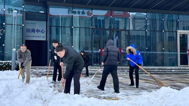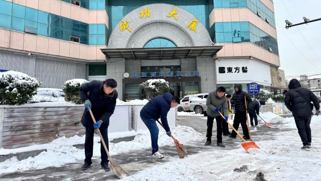 沖鋒在前,擔當在風(fēng)雪一線(xiàn)熠熠生輝。能源板塊各電站職工頂風(fēng)冒雪,爭分奪秒清掃光伏區、風(fēng)機場(chǎng)設備積雪,運用科技手段嚴密巡檢,以專(zhuān)業(yè)守護著(zhù)能源“生命線(xiàn)”。遠大、新亞等生產(chǎn)型企業(yè)自發(fā)清掃主干道與車(chē)間通道,為物流暢通與安全生產(chǎn)保駕護航。勞代中心黨員清晨便開(kāi)辟出辦事大廳的“安全通道”,擦亮服務(wù)民生窗口。港華燃氣青年突擊隊迅速啟動(dòng)應急預案,分組奔赴全市各調壓站點(diǎn),冒雪檢查設備、清理積雪,以精準操作守護著(zhù)千家萬(wàn)戶(hù)的灶臺溫暖,切實(shí)履行“保民生、穩供氣”的社會(huì )責任。成功大廈、科創(chuàng )園、國泰品山大廈、藍天商業(yè)公司等商場(chǎng)樓宇中,黨員先鋒隊快速清理出入口積雪,全力保障業(yè)戶(hù)出行便利與安全。醫院干部職工在門(mén)診大廳出入口、住院部通道等區域分工協(xié)作,用忙碌的身影開(kāi)辟出安全暢通的就醫通道,在皚皚白雪中彰顯溫暖明亮的醫者仁心。集團本部大樓前,青年突擊隊聞令而動(dòng),輪流接力掃冰除雪,確保了公共區域通行無(wú)阻。從生產(chǎn)保供到服務(wù)前沿,國投人用“擔當務(wù)實(shí)、團結協(xié)作”的實(shí)際行動(dòng)在皚皚白雪中踏出了一條條用青春守護的熱忱征途。